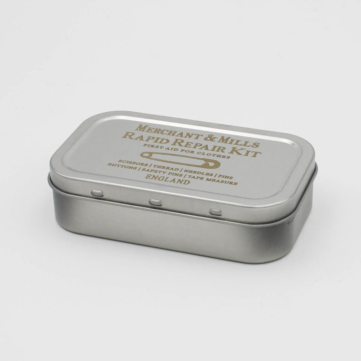 Coffret robuste avec assortiment d’aiguilles, fils noir/blanc, boutons, épingles, mini-ciseaux, mètre souple. Durable et esthétique.